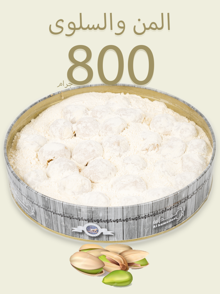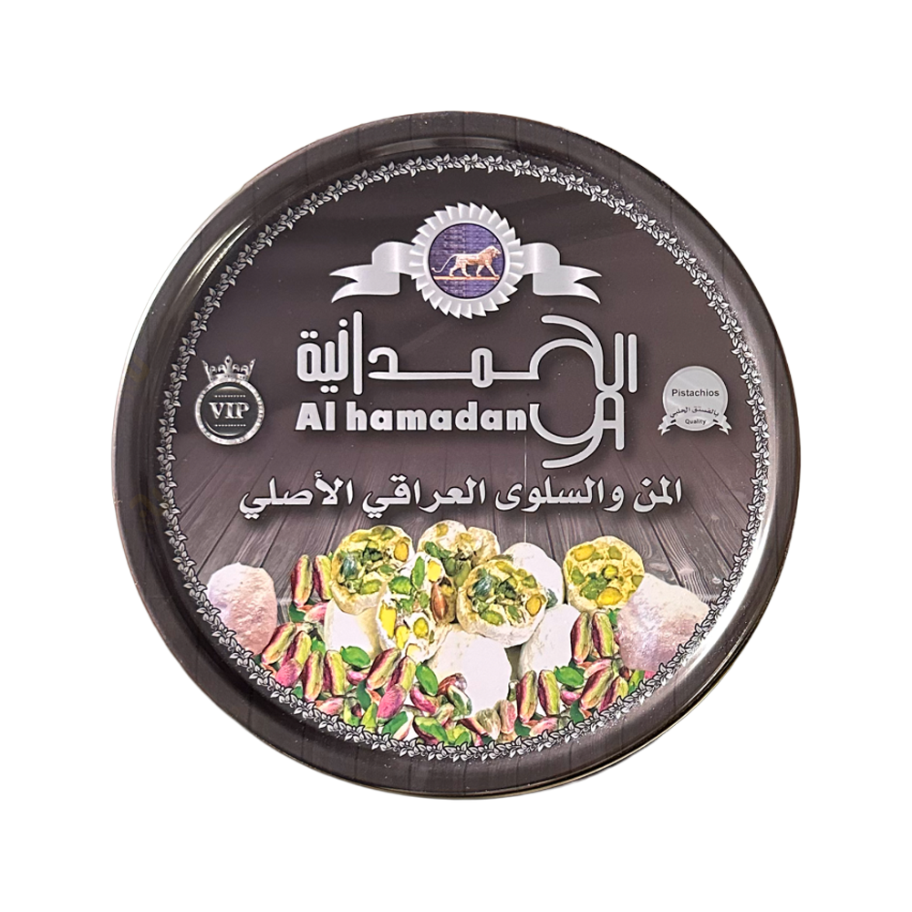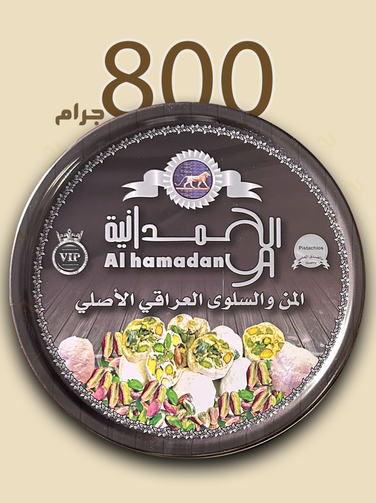 من وسلوى حلوى عراقية نقدمها لكم بعلبة فاخرة بوزن مايقارب الكيلو ( ٨٠٠جرام )، تشتهر حلوى المن والسلوى من قديم الزمن في العراق وتمتاز بأنها طبيعية تنتج من أشجار الجوز المتقدمة في العمر وشجر البلوط وشجرة لسان العصفور.
